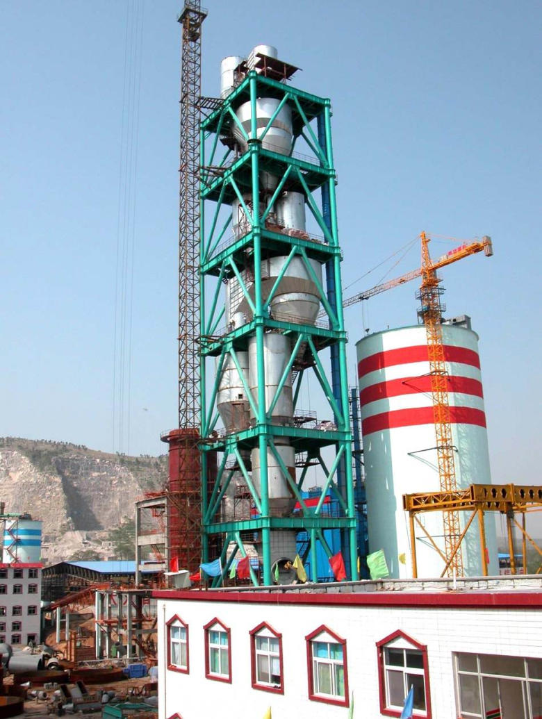 自2001年以來,我公司自主開發(fā)設(shè)計了1000t/d、3000t/d、4000t/d(單系列)、5000t/d(雙系列)配套高效五級旋風預熱器、豎煙道、沸騰流化床分解爐、回轉(zhuǎn)窯、流線型大截面窯頭罩、水平布置的三次風管,四通道窯頭煤粉燃燒器、雙通道F爐煤粉燃燒器等設(shè)備,并在多項工程中成功應(yīng)用,均達到國內(nèi)同類設(shè)備先進水平,得到廣大用戶的一致好評。目前我院正在獨立開發(fā)5000t/d(單系列)燒成系統(tǒng)。