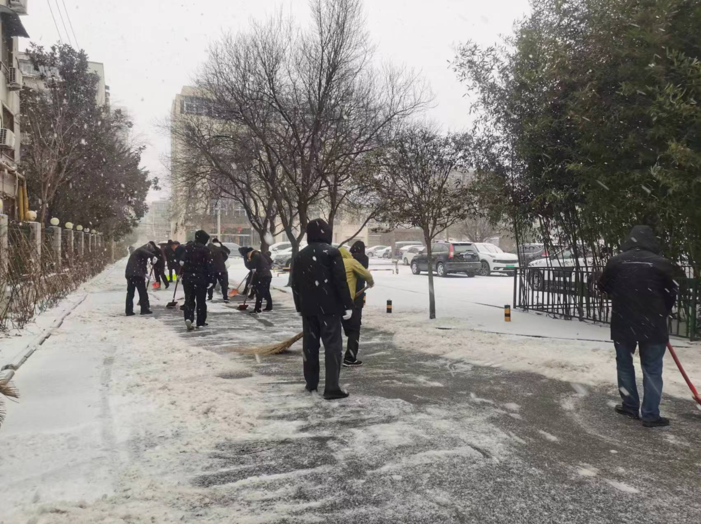 2月20日下午,鄭州迎來了龍年的第一場大雪。道路積雪結(jié)冰給出行帶來極大安全隱患。建材院迅速組織黨員職工開展義務(wù)掃雪活動。